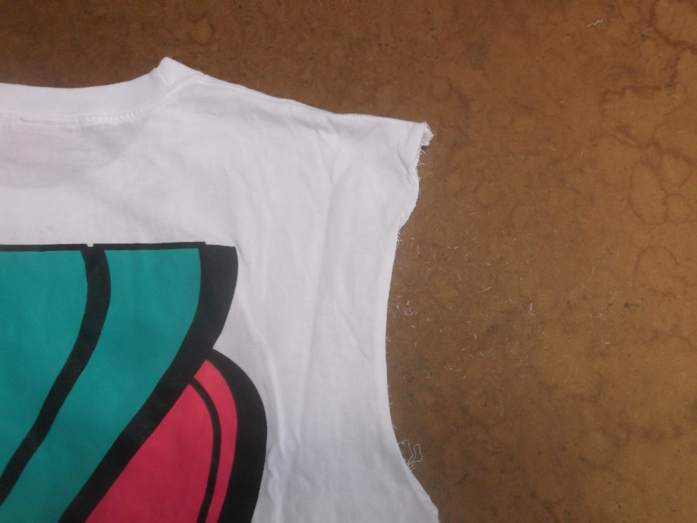 プリントの気に入ってる大きいサイズのTシャツを小さく加工していきます。…