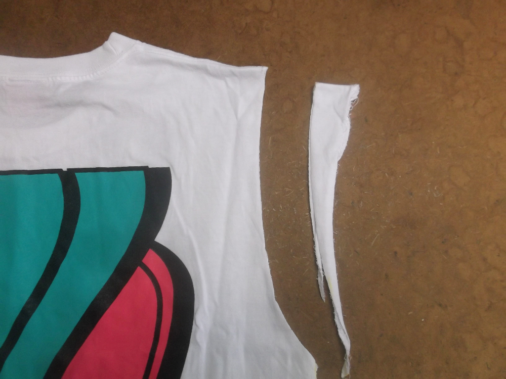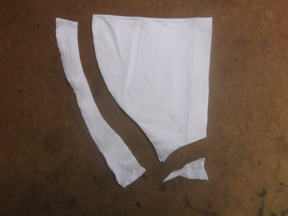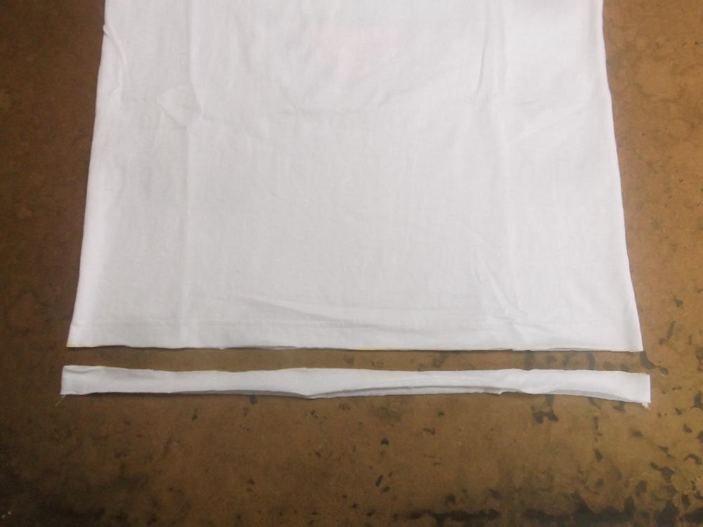 11枚目はTシャツの胴体の着丈以外の肩幅、身幅、裾幅の生地をカットした後です。