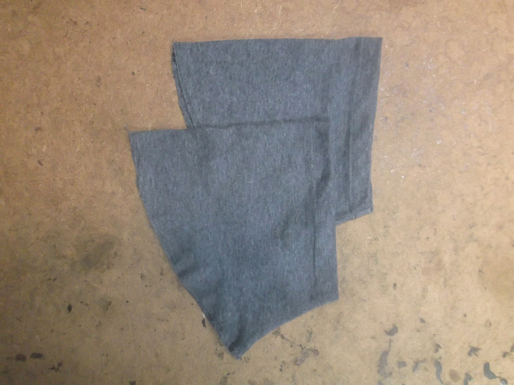 10枚目は袖のパーツの生地を見本の幅に合う様に生地をカットしていきます。