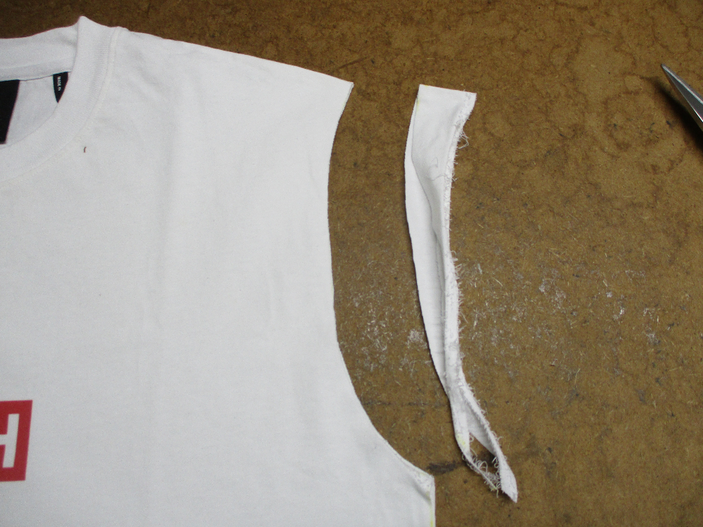 5枚目は左右の袖のパーツをアームホールの縫い目から取り外した写真です。
