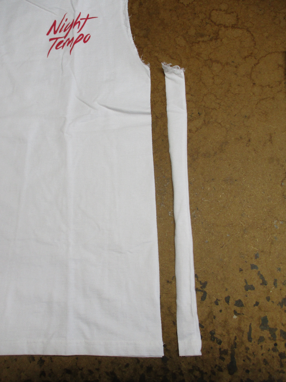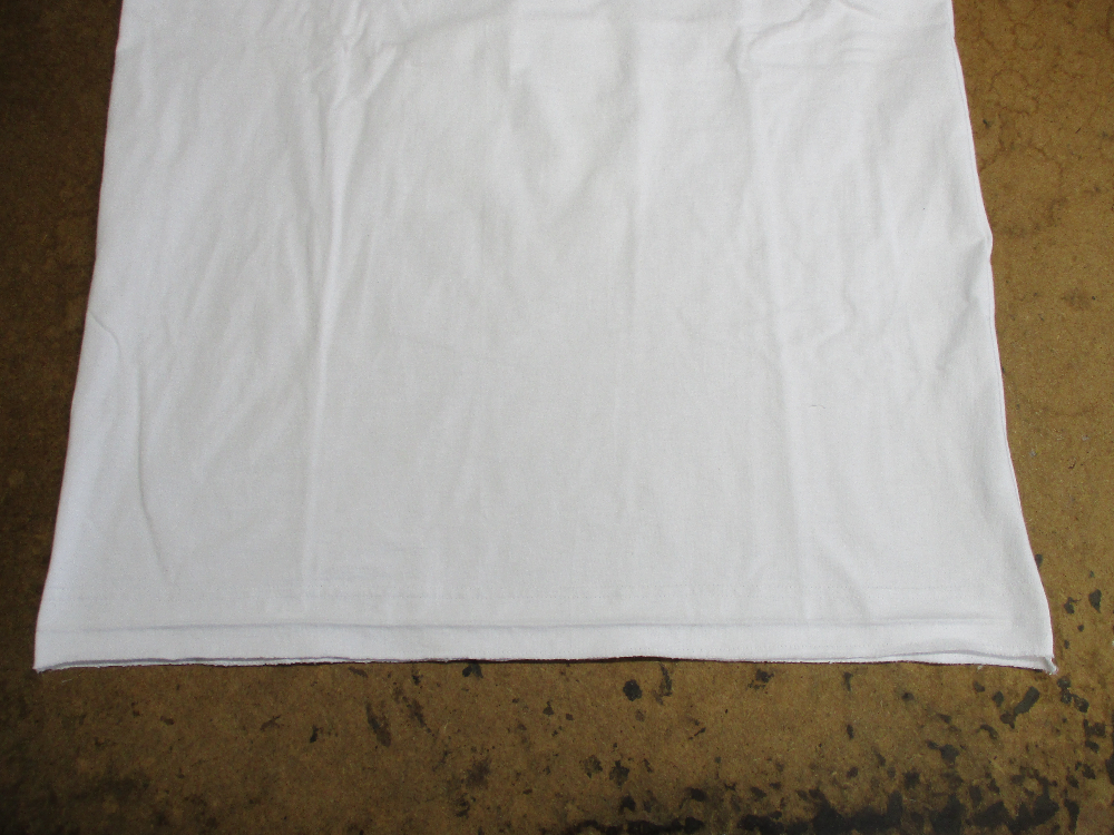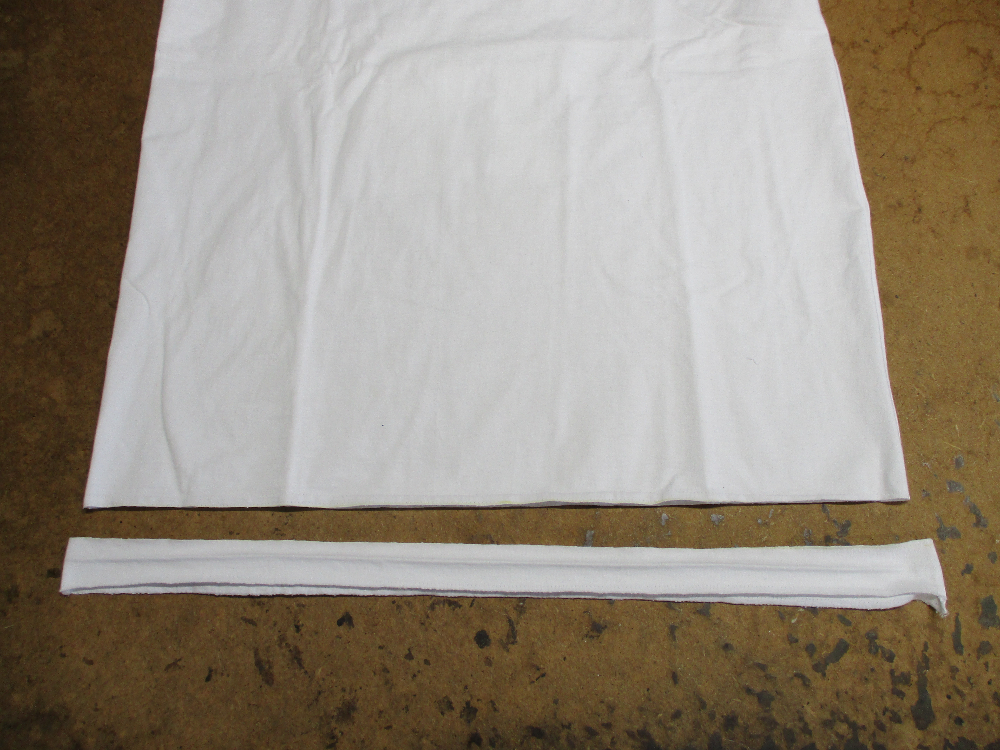 4枚目は脇から裾のサイドの生地をカットして見本のTシャツの幅に合う様にしていきます。