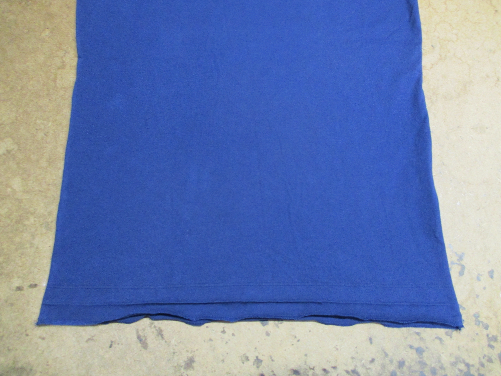 3枚目は着丈の長さが見本のTシャツの長さと微妙に違いますので裾の縫い目の重なった生地の部分が裾の生地をカットするときに入りますのでほどいていきます。