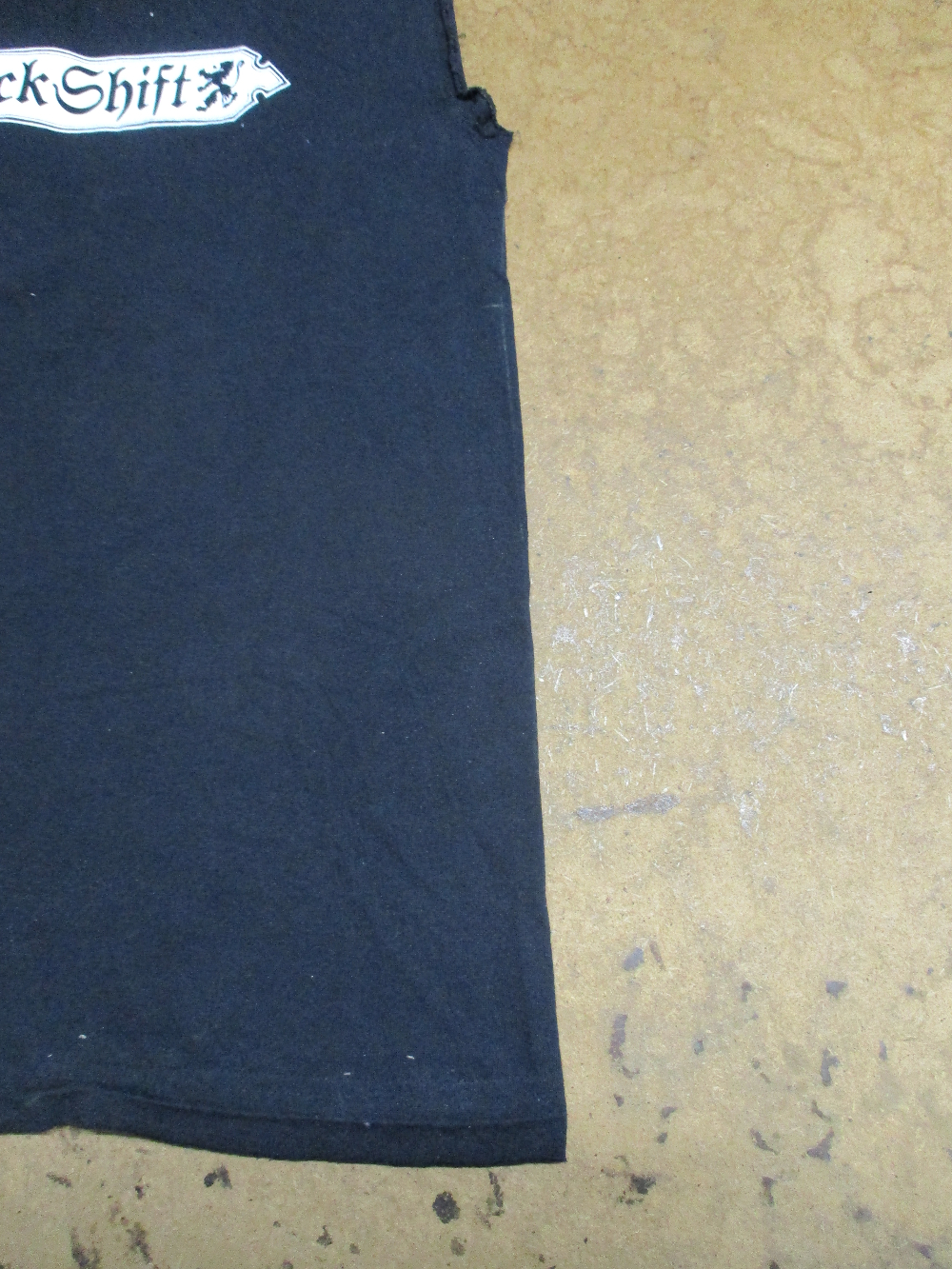 6枚目は脇から裾のサイドの生地をカットして見本のTシャツの幅に近づけていきます。