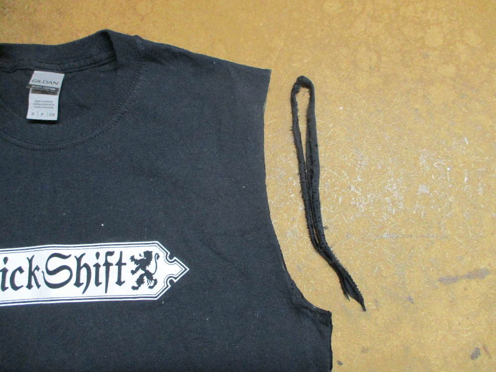 5枚目はTシャツの胴体の左右の袖のパーツをアームホールの縫い目から取り外した写真です。