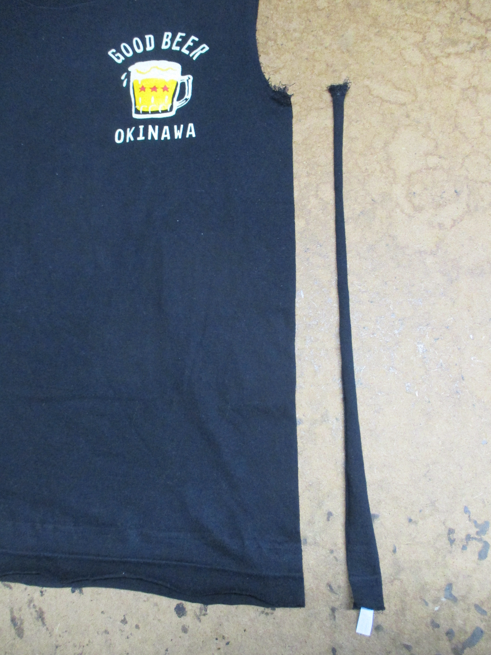 10枚目は着丈以外のTシャツの胴体の肩幅、身幅、裾幅の生地をカットした写真です。