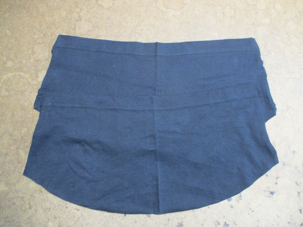 4枚目は脇から裾のサイドの生地をカットして見本のTシャツの幅に合う様にしていきます。