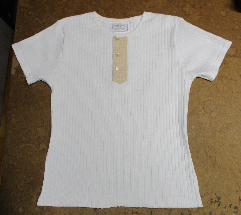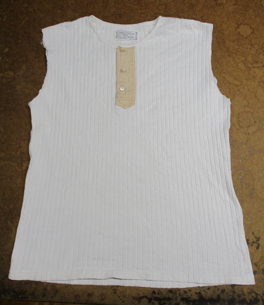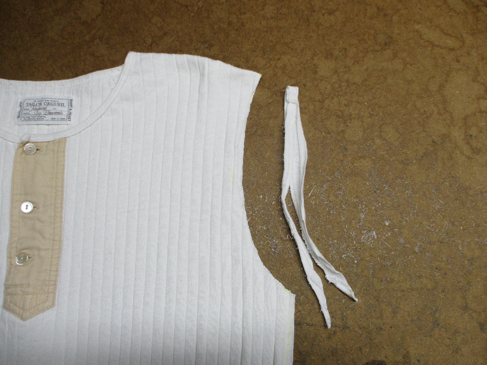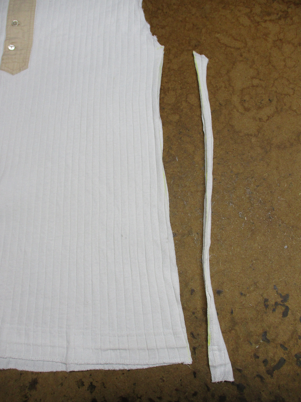 3枚目は左右の袖のパーツを取り外したヘンリーネックのTシャツの胴体の写真です。