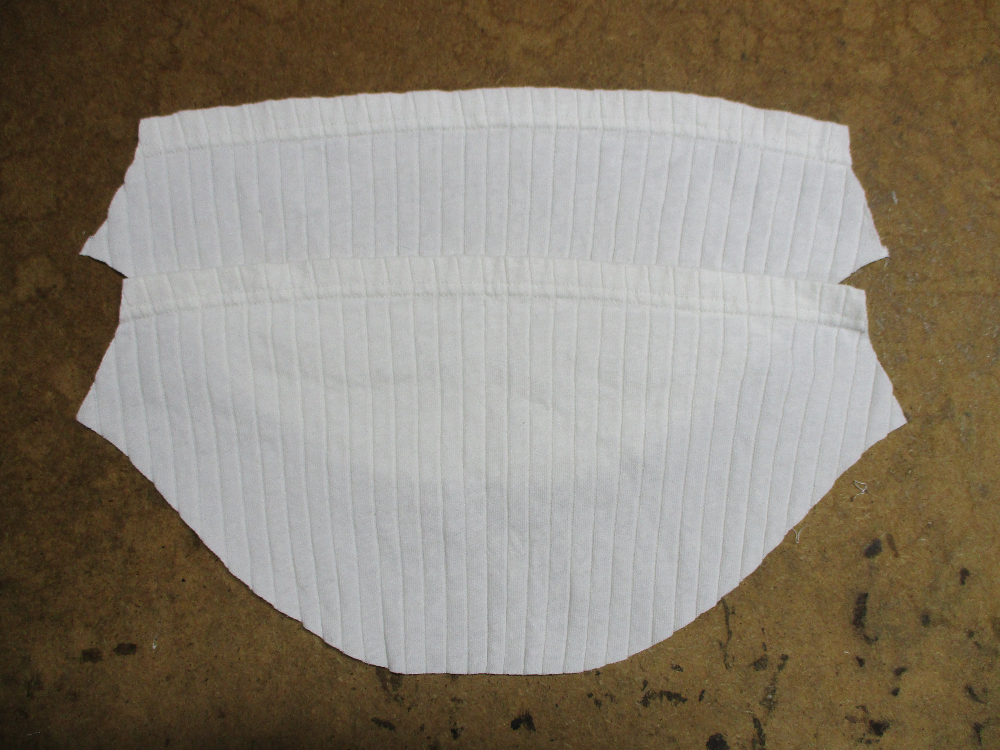 11枚目は袖幅、袖丈を見本のTシャツの幅に合わせて生地をカットした写真です。