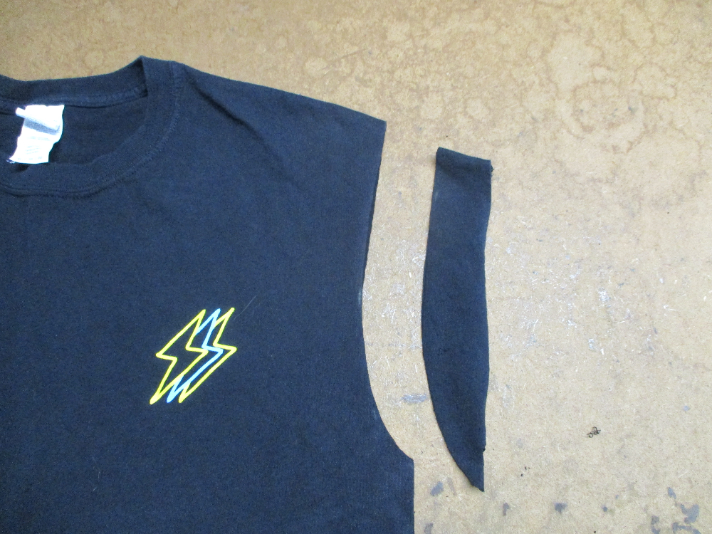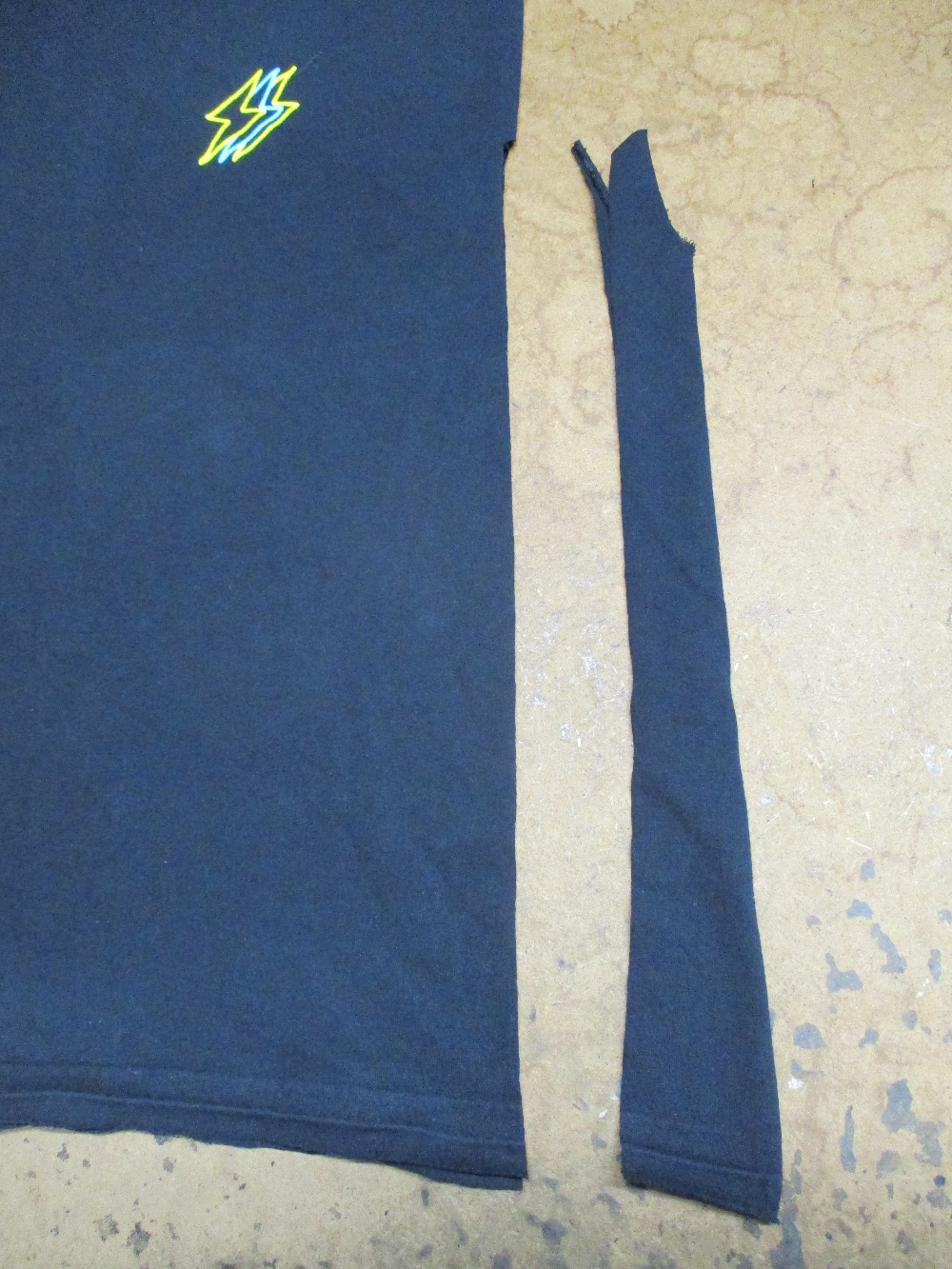 10枚目はTシャツの胴体の着丈以外の肩幅、身幅、裾幅の生地をカットした後の写真です。
