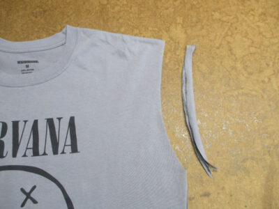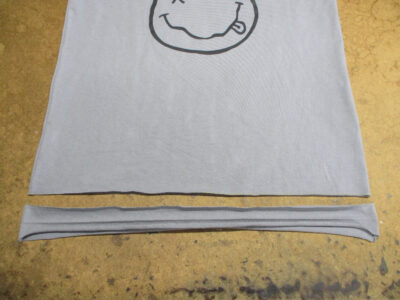 プリントの気に入ってる大きいサイズのTシャツを小さく修理していきます。