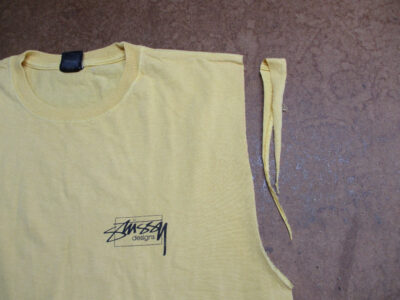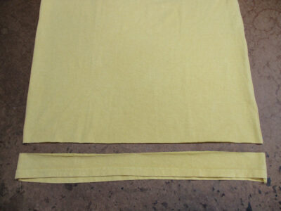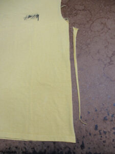 4枚目は脇から裾のサイドの生地をカットして見本のTシャツの幅に合うように仕上げていきます。