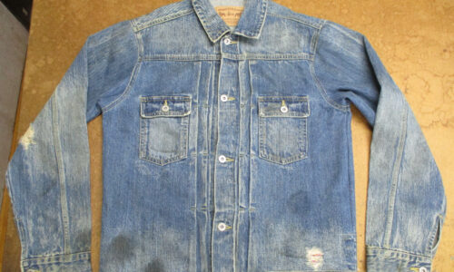 大きいサイズのデニムジャケットをお客さんの好みのサイズのGジャンを見本でお借りして小さくリサイズしていきます。今回は来店されたお客さんで大きいサイズのデ…