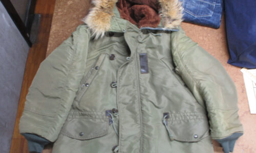 N-3Aのフロントファスナーとリブニットを新しく交換していきます。今回は奈良県からの郵送のお客さんで荷物にN-3Aフライトジャケットと交換用の新しいビン…