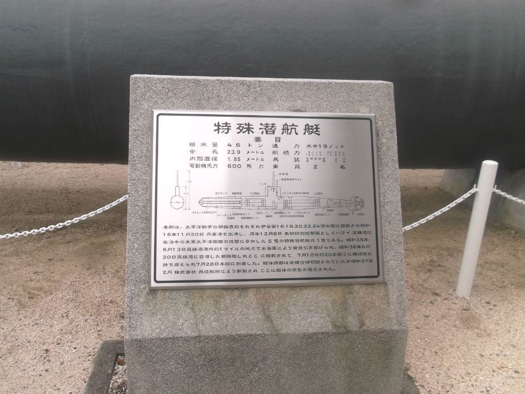 5枚目は特殊潜航艇の説明の書いた石碑の写真です。