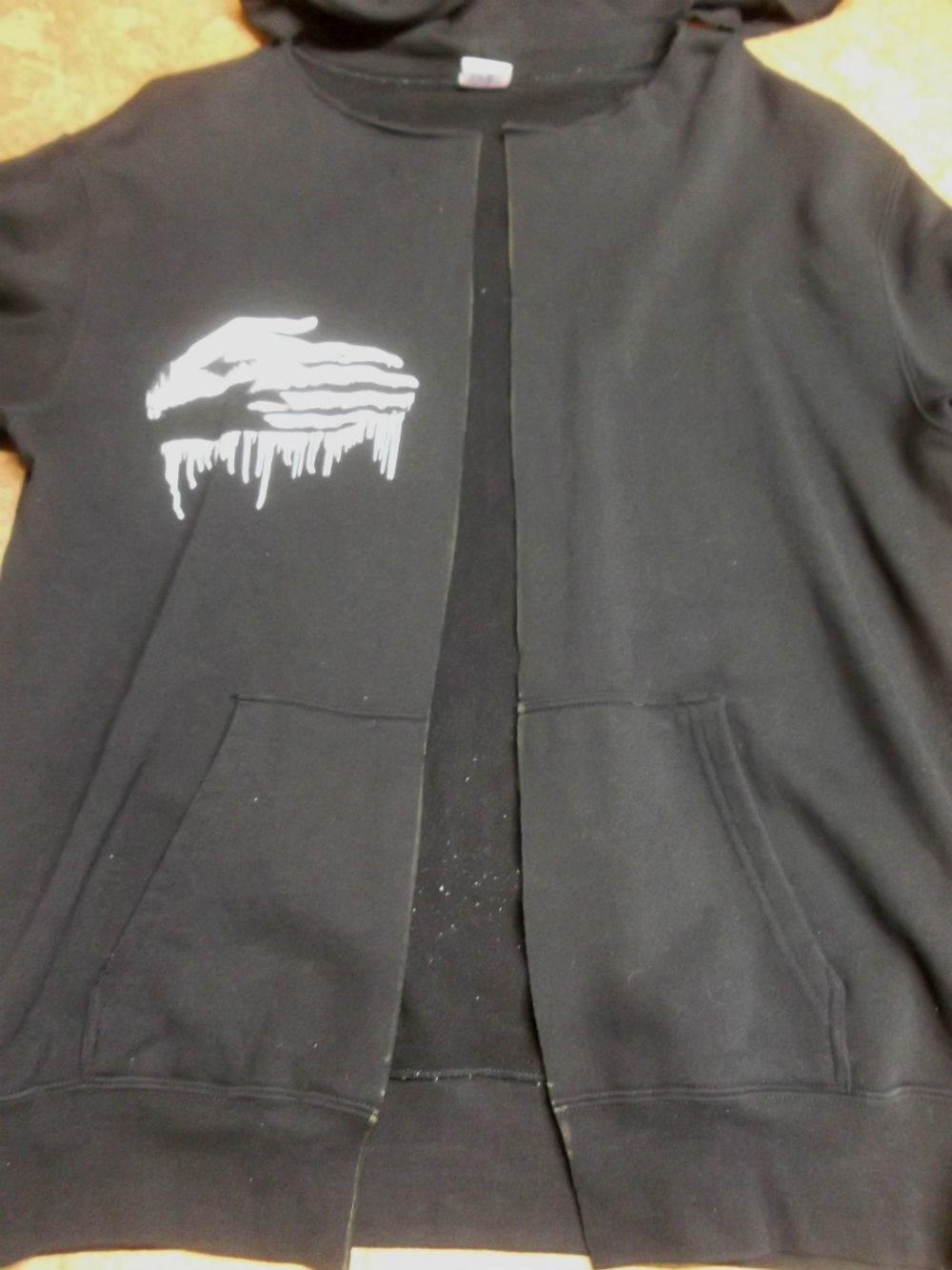 1枚目は三重県からの郵送のお客さんのファスナーを取り付けていく前のパーカーです。