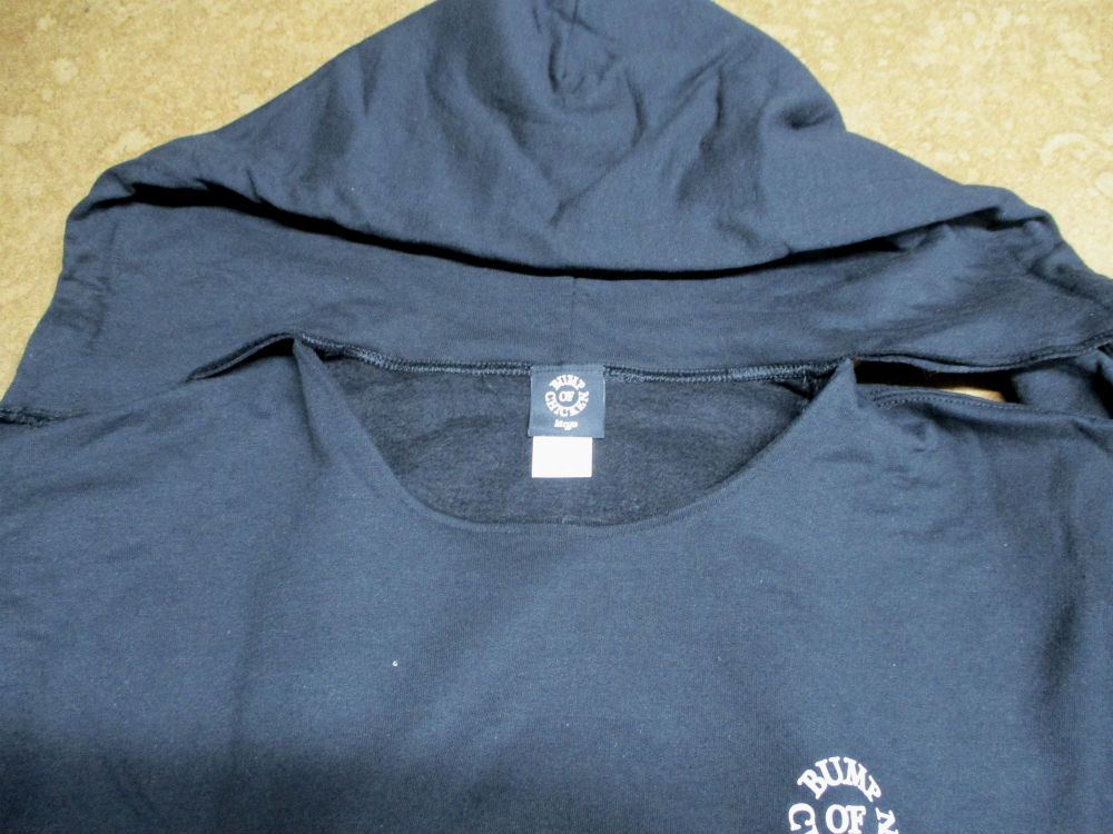 1枚目は大阪府からの郵送のお客さんのファスナーを取り付けてジップパーカーにリメイクしていく前の写真です。