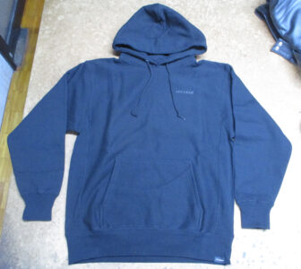 かぶりのフーディーにファスナーを取り付けてジップパーカーに加工していき…