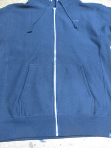 1枚目は岐阜県からの郵送のお客さんのジッパーを取り付けていくフーディーの写真です。