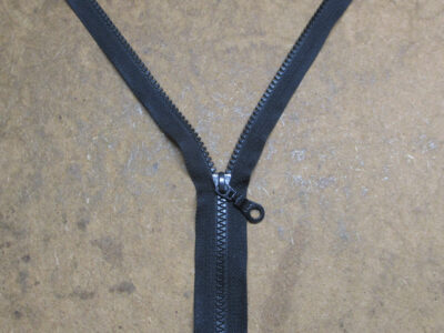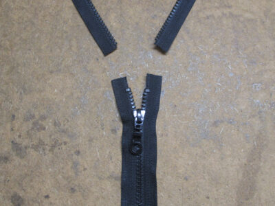 9枚目は前身ごろのカットした生地の長さに合わせてダブルジッパーの長さも同じ長さに短く仕上げていきます。