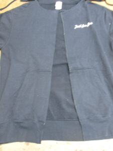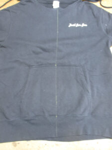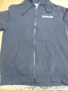 1枚目は来店されたお客さんのダブルジッパーを取り付けてジップパーカーに加工していくフーディーの写真です。