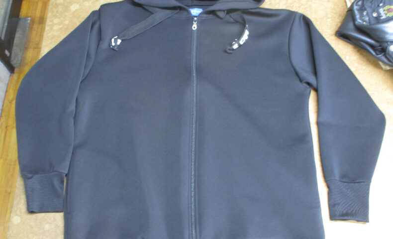 11枚目はフーディーに取り付けたダブルジッパーの全体が見える写真です。