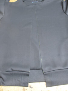 5枚目は前身ごろのセンターの生地をカットしてファスナーを取り付けられるように作業を進めていきます。