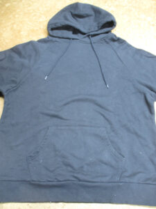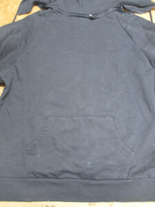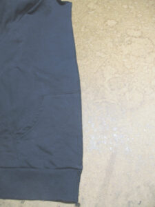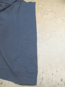 7枚目はフーディーの前身ごろの生地をカットした写真です。