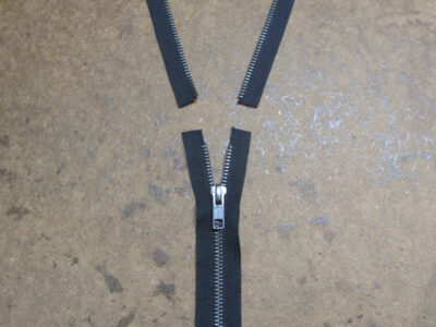10枚目はカットした前身ごろの長さに合わせてジッパーのレールのコマをカットして長さを合わせていきます。