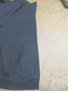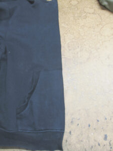 3枚目はファスナーを取り付けていく前のフーディーの前身ごろの写真です。